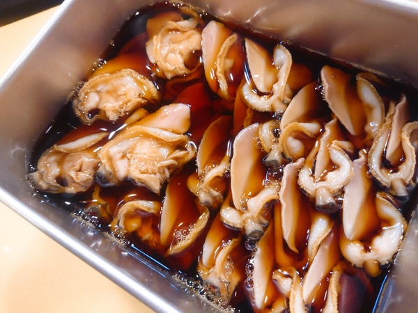 今日は大粒のハマグリが入ったので『煮ハマグリ』にします 大徳家の煮ハマグリは漬け込み日数1日~3日で出す他店とは違い14日以上漬け込みます 秘伝の漬け込みタレとハマグリの浸透圧が一緒になり始めたころからお客様にお出しします 手のかかる江戸前仕事ですが大昔のお寿司を再現したものなんです 大徳家流『煮ハマグリの握り寿司』是非!